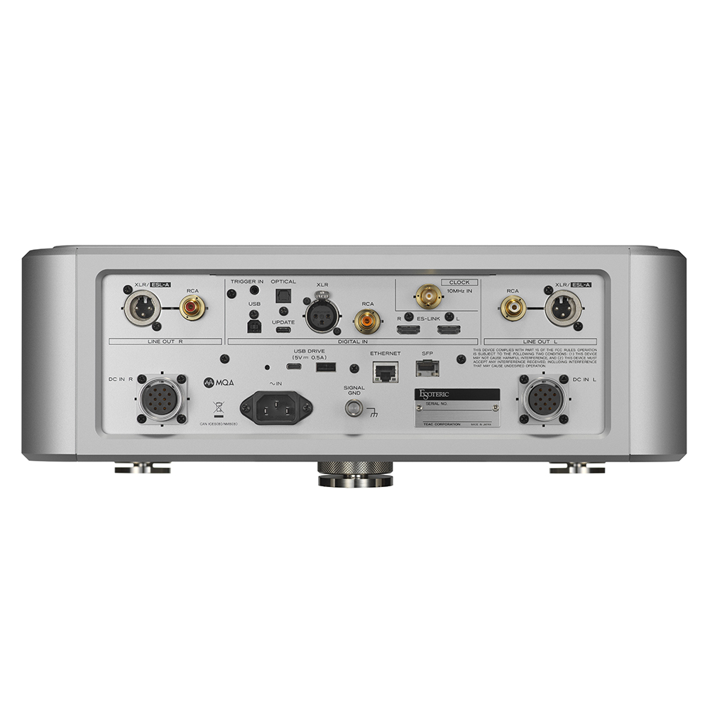 • Master Sound Discrete DAC G2: 最新一代以 FPGA最基礎的Multi-Level ΔΣ DAC,完全由 Esoteric 自行設計製造,嚴選離散元件打造